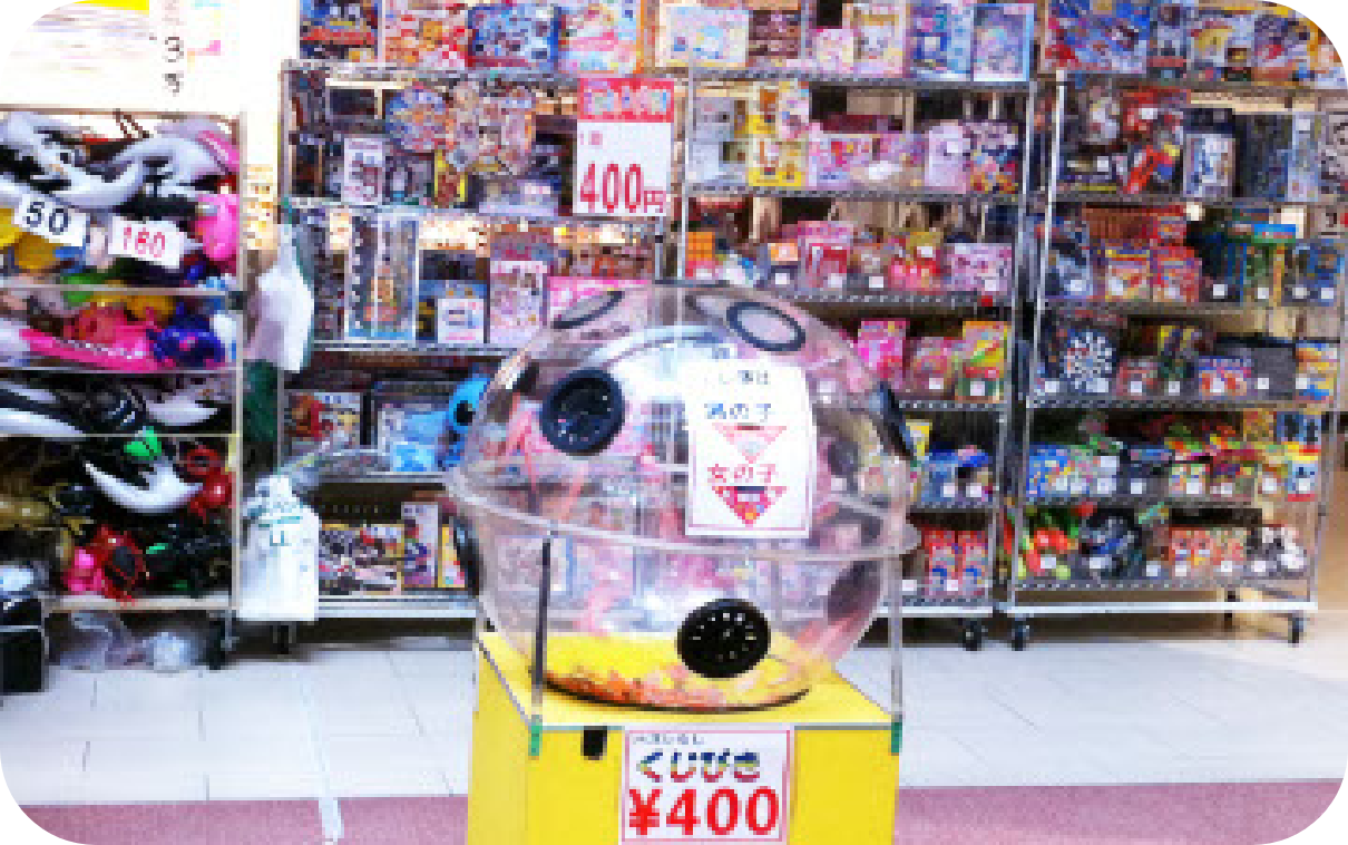 子供たちはくじびきが大好きです!人気のおもちゃから可愛い雑貨商品まで景品いろいろ。男の子と女の子を分けてくじを引きます。 -