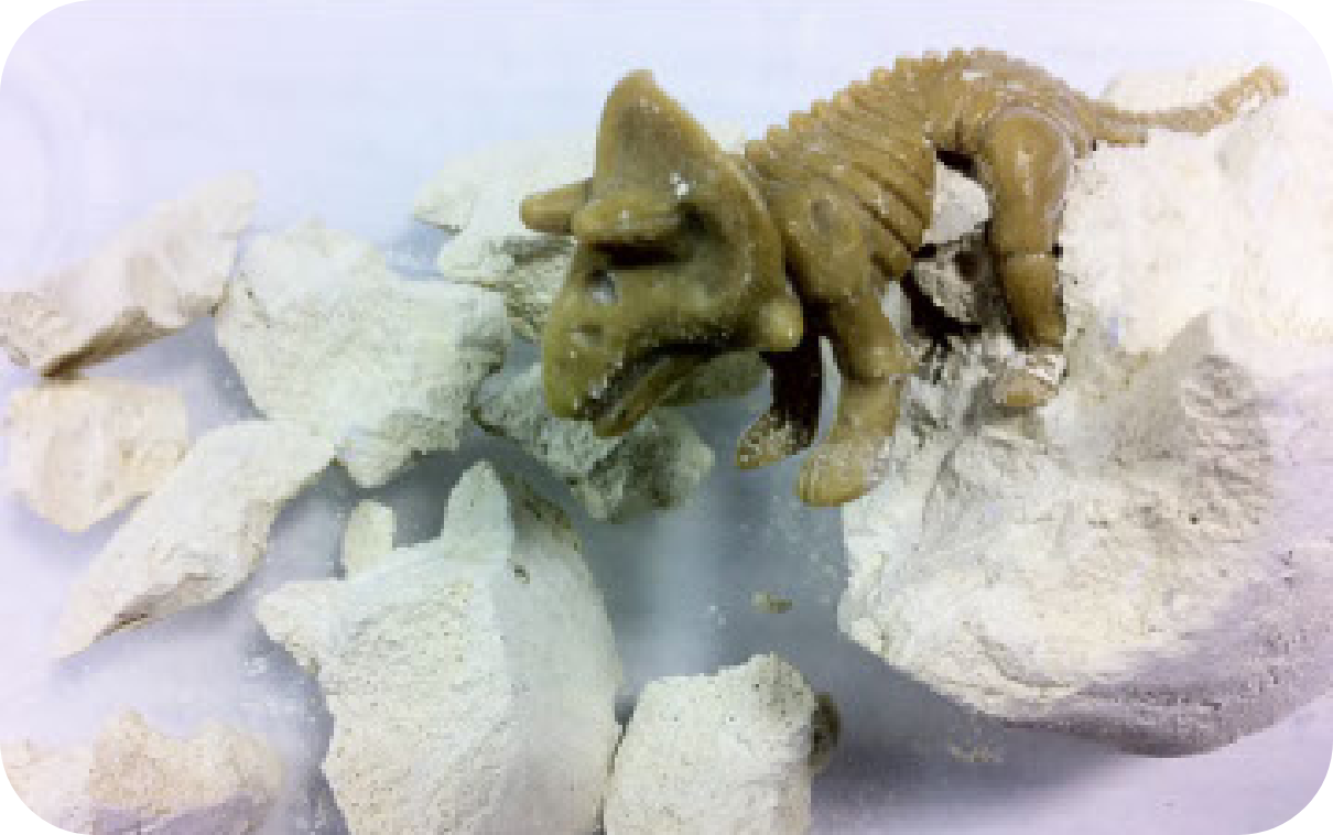 恐竜の入った卵を砂の中から発掘していただきます。発掘した中から1つを選んでお持ち帰りいただきます。たまごを削ると中から恐竜が出てきます。