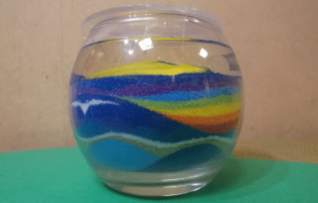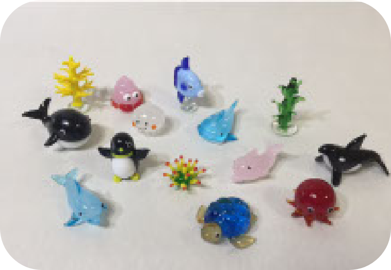 カラフルな砂とガラス細工を組み合わせて、自由に作れます。