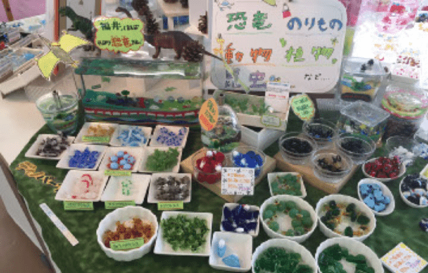 様々なパーツの中から好きなものを選んで作ることで「組み合わせは無限大!」発想力、創造力を育むことが出来ます。製作時間は30分程度、クリアジェルが固まるのに約40分と比較的短い時間で作ることができます。ご用意してあるパーツは全てオリジナルで、他にはないオリジナリティ溢れる作品を作ることが出来ます。